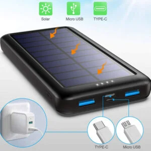 La Power Bank de Pxwaxpy (en Amazon por No se han encontrado productos., también batería de 20.000 mAh en PcComponentes y batería 20.000 mAh en Phone House) tiene una capacidad de 26.800 mAh y, además, un receptor de carga solar. Cuenta además con carga rápida y 2 puertos USB 3 de carga rápida para cargar smartphones y otros dispositivos.